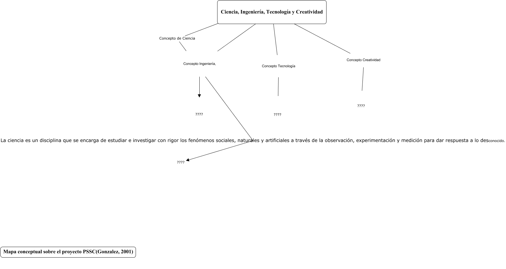 This Concept Map, created with IHMC CmapTools, has information related to: PSSC, Concepto de Ciencia La ciencia es un disciplina que se encarga de estudiar e investigar con rigor los fenómenos sociales, naturales y artificiales a través de la observación, experimentación y medición para dar respuesta a lo desconocido. ????, Ciencia, Ingeniería, Tecnología y Creatividad Concepto Ingeniería, ????, Ciencia, Ingeniería, Tecnología y Creatividad Concepto Tecnología ????, Ciencia, Ingeniería, Tecnología y Creatividad Concepto Creatividad ????, Ciencia, Ingeniería, Tecnología y Creatividad ???? Concepto de Ciencia