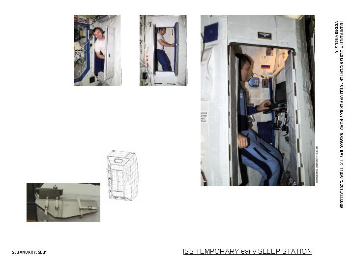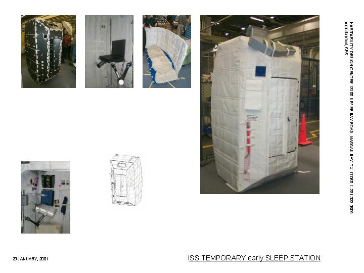 Equipment Restraint.jpg Foot Restraint.jpg Individual Crew Quarters Overview.ppt Open Sleep Station.jpg Sleep Station.jpg Temporary early Sleep Station.jpg TeSS.jpg TeSS Overview.ppt TeSS Pictures.ppt Workstation.jpg
