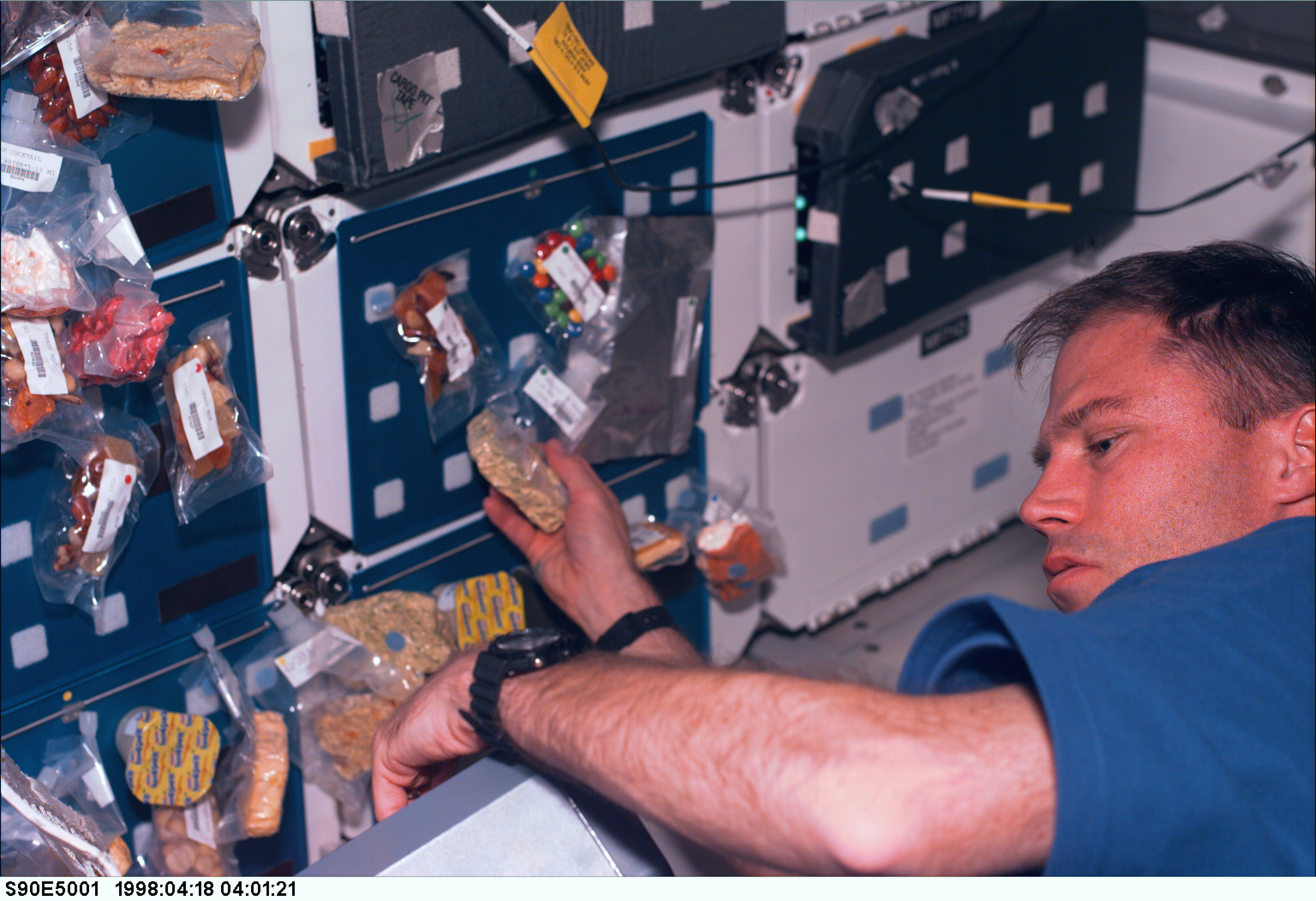 Advanced Food Needs.ram Advanced Food Processing.ppt Advanced Food Roadmap.ppt Apple Picking.jpg Astronaut Drinking.jpg Astronaut drinking from Drink Bag.jpg Astronaut eating on Shuttle.jpg Astronauts and Oranges.jpg Astronauts eating Together.jpg Astronauts Preparing for Mealtime.jpg Astronauts Unpacking Food Containers.jpg Astronauts with Oranges.jpg Astronaut using Chop Sticks.jpg Astronaut using Fork.jpg Astronaut using Spoon.jpg Astronaut with Repackaged Candy.jpg Bok Choy.jpg Bread.jpg Breakfast Menu.url Condiments Storage.jpg Dinner Menu.url Drink Containers.jpg Drink Straws.jpg Eating.jpg Eating in Space.ram Eating Space Food.ram Empty Food Tray.jpg Empty Food Tray Bottom.jpg Food Container Closed.jpg Food Container Open.jpg Food Containers Stowed.jpg Food Facts.pdf Food Lockers.jpg Food Packaging.ram Food Processing.ppt Food Safety.ppt Food Sorting.jpg Food Stowage.jpg Food Tray and Utensils.jpg Food Tray- Apollo Era.jpg Happy Astronaut.jpg Intermediate Moisture Food.jpg Lettuce Growing.jpg Lunch Menu.url Mealtime.jpg Mealtime 2.jpg Metallized Pouch.jpg NASA Developed Food- Chicken Salad.jpg NASA Developed Food- Cinnamon Cubes.jpg Natural Form Food.jpg Preparing Tortillas.jpg Product Development.ppt Rehydratable Food.jpg Russian Foods.jpg Sensory Evaluation.jpg Soy Processor.jpg Soy Products.jpg Space Food Website.url Space Station Meal Tray.jpg Spinach.jpg Stowed Food Trays.jpg Thermostabilized Food.jpg Utensils.jpg Water Dispensor.jpg