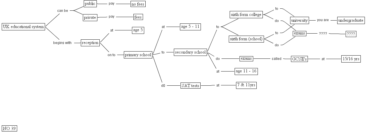 39, fees, exams, university, sat tests, age 11 - 16, age 5, secondary school, sixth form (school), gcse's, 7 & 11yrs, age 5 - 11, reception, no fees, private, no 39, 15 16 yrs, ????, exams, public, uk educational system, primary school, undergraduate, sixth form college