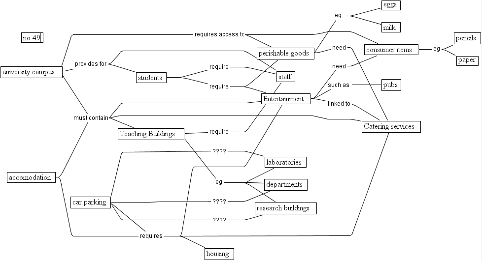 no 49, no 49, milk, research buildings, departments, housing, teaching buildings, university campus, perishable goods, car parking, pubs, accomodation, entertainment, pencils, laboratories, paper, catering services, students, eggs, staff, consumer items