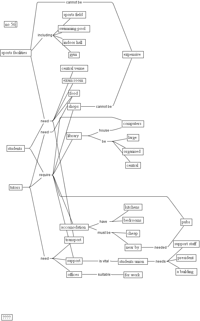 no 56, a building, sports facilities, indoor hall, shops, library, kitchens, large, support staff, president, bedrooms, sports field, offices, ????, students, tutors, pubs, swimming pool, students union, for work, organised, accomodation, exam room, expensive, near by, central, central venue, cheap, transport, support, food, no 56, computers, gym
