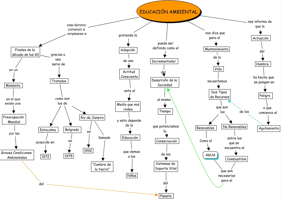 Este Cmap, tiene información relacionada con: EDUCACION AMBIENTAL, Tratados como son los de Rio de Janeiro, Preocupación Mundial por las Graves Condiciones Ambientales, Adopción de una Actitud Consciente, Rio de Janeiro llamado "Cumbre de la tierra", Combustible que son necesarios para el Desarrollo de la Sociedad, AGUA que son necesarios para el Desarrollo de la Sociedad, Agotamiento de los Dos Tipos de Recursos, Estocolmo acaecido en 1972, Tratados como son los de Estocolmo, Incrementador del Desarrollo de la Sociedad, Actitud Consciente ante el Medio que nos rodea, Momento en el que existe una Preocupación Mundial, Actuación del Hombre, Conservación de los Sistemas de Soporte Vital, Educación que demos a los Niños, Tiempo que potenciamos la Conservación, Dos Tipos de Recursos que son los Renovables, Rio de Janeiro en 1992, Mantenimiento de la Vida, Peligro o que comience el Agotamiento