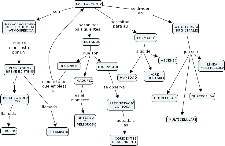 tormentas, desarrollo, estados, 4 categor�as principales, corrientes descendentes, precipitaci�n copiosa, l�nea multicelular, formaci�n, unicelulares, madurez, resplandor breve e intenso, aire inestable, intenso ruido seco, multicelulares, intenso y peligroso, humedad, disipaci�n, superceldas, trueno, rel�mpago, ascenso, las tormentas, descarga brusca de electricidad atmosf�rica