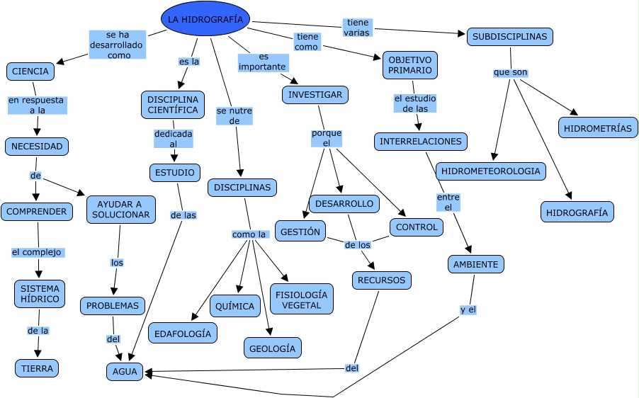 Este Cmap, tiene información relacionada con: HIDROLOGÍA, LA HIDROGRAFÍA tiene como OBJETIVO PRIMARIO, PROBLEMAS del AGUA, LA HIDROGRAFÍA es importante INVESTIGAR, DISCIPLINAS como la QUÍMICA, DISCIPLINAS como la GEOLOGÍA, OBJETIVO PRIMARIO el estudio de las INTERRELACIONES, INTERRELACIONES entre el AMBIENTE, INVESTIGAR porque el DESARROLLO, DISCIPLINA CIENTÍFICA dedicada al ESTUDIO, ESTUDIO de las AGUA, SUBDISCIPLINAS que son HIDROMETEOROLOGIA, AMBIENTE y el AGUA, LA HIDROGRAFÍA se ha desarrollado como CIENCIA, CONTROL de los RECURSOS, SUBDISCIPLINAS que son HIDROGRAFÍA, DISCIPLINAS como la EDAFOLOGÍA, SISTEMA HÍDRICO de la TIERRA, SUBDISCIPLINAS que son HIDROMETRÍAS, NECESIDAD de AYUDAR A SOLUCIONAR, INVESTIGAR porque el CONTROL