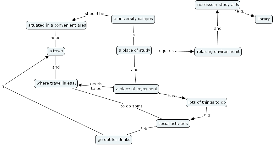 no 16, library, where travel is easy, necessqry study aids, go out for drinks, situated in a convenient area, social activities, a place of study, a town, lots of things to do, a place of enjoyment, relaxing enviromnemt, a university campus