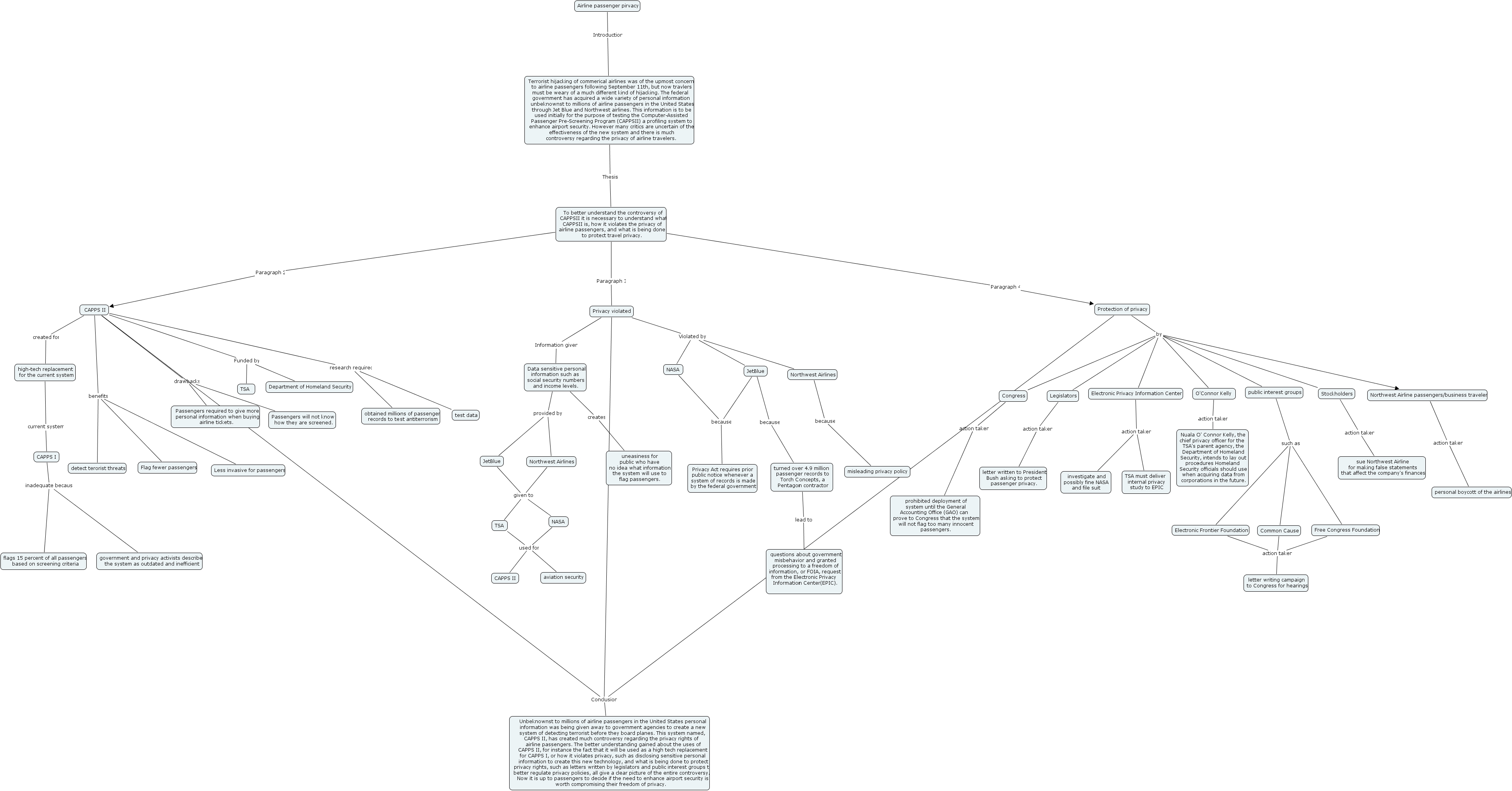 travel privacy1, northwest airlines, nasa, stockholders, capps ii, uneasiness for public who have no idea what information the system will use to flag passengers., capps ii, personal boycott of the airlines, misleading privacy policy, turned over 4.9 million passenger records to torch concepts, a pentagon contractor, letter writing campaign to congress for hearings, unbeknownst to millions of airline passengers in the united states personal information was being given away to government agencies to create a new system of detecting terrorist before they board planes. this system named, capps ii, has created much controversy regarding the privacy rights of airline passengers. the better understanding gained about the uses of capps ii, for instance the fact that it will be used as a high tech replacement for capps i, or how it violates privacy, such as disclosing sensitive personal information to create this new technology, and what is being done to protect privacy rights, such as letters written by legislators and public interest groups to better regulate privacy policies, all give a clear picture of the entire controversy. now it is up to passengers to decide if the need to enhance airport security is worth compromising their freedom of privacy., o'connor kelly , sue northwest airline for making false statements that affect the company's finances, flags 15 percent of all passengers based on screening criteria, northwest airlines, electronic frontier foundation, flag fewer passengers, jetblue, passengers required to give more personal information when buying airline tickets., protection of privacy, legislators, airline passenger pirvacy, nuala o' connor kelly, the chief privacy officer for the tsa's parent agency, the department of homeland security, intends to lay out procedures homeland security officials should use when acquiring data from corporations in the future., common cause, less invasive for passengers, capps i, aviation security, tsa, detect terorist threats, public interest groups, free congress foundation, questions about government misbehavior and granted processing to a freedom of information, or foia, request from the electronic privacy information center(epic). , data sensitive personal information such as social security numbers and income levels., department of homeland security, privacy violated, northwest airline passengers business travelers, obtained millions of passenger records to test antiterrorism, passengers will not know how they are screened., terrorist hijacking of commerical airlines was of the upmost concern to airline passengers following september 11th, but now travlers must be weary of a much different kind of hijacking. the federal government has acquired a wide variety of personal information unbeknownst to millions of airline passengers in the united states through jet blue and northwest airlines. this information is to be used initially for the purpose of testing the computer-assisted passenger pre-screening program (cappsii) a profiling system to enhance airport security. however many critics are uncertain of the effectiveness of the new system and there is much controversy regarding the privacy of airline travelers. , prohibited deployment of system until the general accounting office (gao) can prove to congress that the system will not flag too many innocent passengers., letter written to president bush asking to protect passenger privacy., congress, privacy act requires prior public notice whenever a system of records is made by the federal government, tsa must deliver internal privacy study to epic, government and privacy activists describe the system as outdated and inefficient, to better understand the controversy of cappsii it is necessary to understand what cappsii is, how it violates the privacy of airline passengers, and what is being done to protect travel privacy., high-tech replacement for the current system, investigate and possibly fine nasa and file suit, tsa , test data, jetblue, nasa, electronic privacy information center