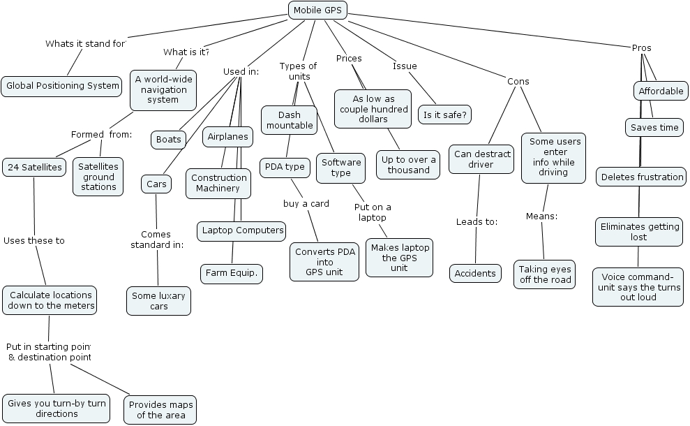 issue report cmap, cars, dash mountable, converts pda into gps unit, gives you turn-by turn directions, pda type, some luxary cars, accidents, some users enter info while driving, can destract driver, affordable, a world-wide navigation system, 24 satellites, voice command- unit says the turns out loud, airplanes, provides maps of the area, calculate locations down to the meters, taking eyes off the road, construction machinery, saves time, up to over a thousand, is it safe?, as low as couple hundred dollars, boats, mobile gps, laptop computers, farm equip., eliminates getting lost, satellites ground stations, makes laptop the gps unit, deletes frustration, software type, global positioning system