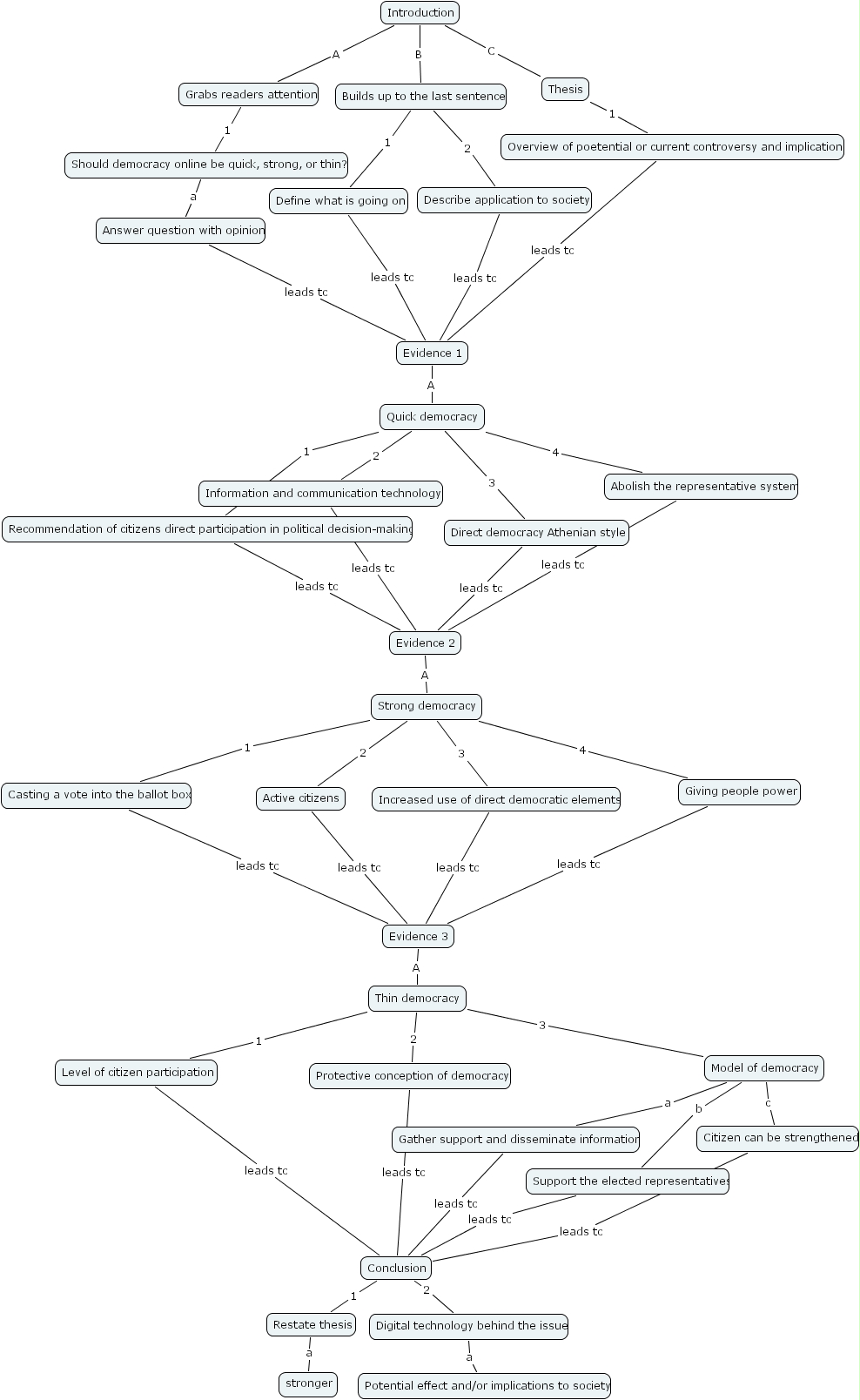 democracy, grabs readers attention, protective conception of democracy, gather support and disseminate information, support the elected representatives, abolish the representative system, evidence 3, should democracy online be quick, strong, or thin?, stronger, digital technology behind the issue, level of citizen participation, evidence 2, active citizens, define what is going on, builds up to the last sentence, model of democracy, introduction, giving people power, information and communication technology, potential effect and or implications to society, quick democracy, overview of poetential or current controversy and implications, thesis, direct democracy athenian style, recommendation of citizens direct participation in political decision-making, answer question with opinion, restate thesis, casting a vote into the ballot box, thin democracy, evidence 1, increased use of direct democratic elements, describe application to society, strong democracy, conclusion, citizen can be strengthened