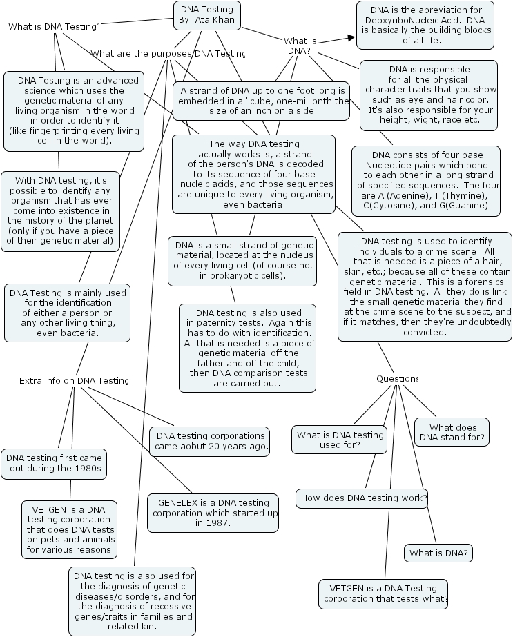 dna testing, what is dna testing used for?, genelex is a dna testing corporation which started up in 1987., vetgen is a dna testing corporation that tests what?, dna is the abreviation for deoxyribonucleic acid. dna is basically the building blocks of all life. , dna is responsible for all the physical character traits that you show such as eye and hair color. it's also responsible for your height, wight, race etc., dna is a small strand of genetic material, located at the nucleus of every living cell (of course not in prokaryotic cells)., with dna testing, it's possible to identify any organism that has ever come into existence in the history of the planet. (only if you have a piece of their genetic material)., dna testing first came out during the 1980s, a strand of dna up to one foot long is embedded in a cube, one-millionth the size of an inch on a side., dna consists of four base nucleotide pairs which bond to each other in a long strand of specified sequences. the four are a (adenine), t (thymine), c(cytosine), and g(guanine)., the way dna testing actually works is, a strand of the person's dna is decoded to its sequence of four base nucleic acids, and those sequences are unique to every living organism, even bacteria., what does dna stand for?, dna testing is also used in paternity tests. again this has to do with identification. all that is needed is a piece of genetic material off the father and off the child, then dna comparison tests are carried out. , dna testing is mainly used for the identification of either a person or any other living thing, even bacteria., dna testing is also used for the diagnosis of genetic diseases disorders, and for the diagnosis of recessive genes traits in families and related kin., how does dna testing work?, vetgen is a dna testing corporation that does dna tests on pets and animals for various reasons., dna testing corporations came aobut 20 years ago., what is dna?, dna testing is an advanced science which uses the genetic material of any living organism in the world in order to identify it (like fingerprinting every living cell in the world)., dna testing by ata khan, dna testing is used to identify individuals to a crime scene. all that is needed is a piece of a hair, skin, etc. because all of these contain genetic material. this is a forensics field in dna testing. all they do is link the small genetic material they find at the crime scene to the suspect, and if it matches, then they're undoubtedly convicted.
