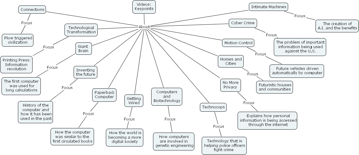 videos, future vehicles driven automatically by computer, how computers are involved in genetic engineering, videos keypoints, inventing the future, the first computer was used for long calculations, no more privacy, how the world is becoming a more digital society, plow triggered civilization, technocops, homes and cities, futuristic houses and communities, cyber crime, paperback computer, the problem of important information being used against the u.s., printing press information revolution, explains how personal information is being accessed through the internet, intimate machines, how the computer was similar to the first circulated books, technological transformation, history of the computer and how it has been used in the past, giant brain, computers and biotechnology, connections, motion control, technology that is helping police officers fight crime, the creation of a.i. and the benefits, getting wired