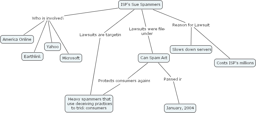 spammers, america online, isp's sue spammers, heavy spammers that use deceiving practices to trick consumers, yahoo, january, 2004, earthlink, can spam act, costs isp's millions, slows down servers, microsoft