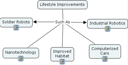 lifestyle improvements, soldier robots, industrial robotics, nanotechnology, lifestyle improvements, improved habitat, computerized cars