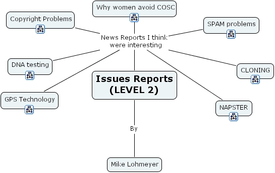 issues summary(level 2), issues reports (level 2), gps technology, dna testing, cloning, spam problems, copyright problems, why women avoid cosc, napster, mike lohmeyer