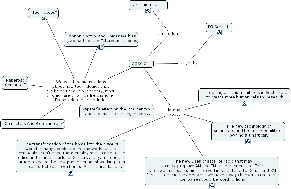 summary report 5, the transformation of the home into the place of work for many people around the world. virtual companies don't need there employees to come to the office and sit in a cubicle for 8 hours a day. instead this article revealed the new phenomenom of working from the comfort of your own home. millions are doing it., napster's effect on the internet world and the music recording industry., the cloning of human embryos in south korea to create more human cells for research., the new technology of smart cars and the many benifits of owning a smart car., i, shamea purnell, computers and biotechnology , technocops , motion control and homes & cities (two parts of the futurequest series), dr.schmitt, cosc 311, the new uses of satellite radio that may someday replace am and fm radio frequencies. there are two main companies involved in satellite radio sirius and xm. if satellite radio replaces what we have always known as radio these companies could be worth billions., paperback computer