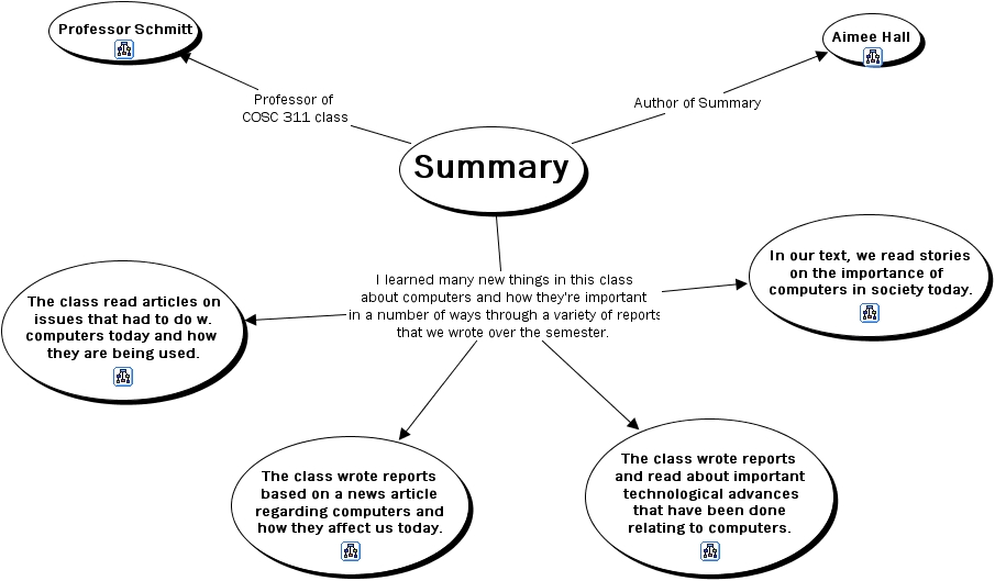 summary, the class wrote reports based on a news article regarding computers and how they affect us today., summary, in our text, we read stories on the importance of computers in society today., the class read articles on issues that had to do w. computers today and how they are being used., professor schmitt, the class wrote reports and read about important technological advances that have been done relating to computers., aimee hall