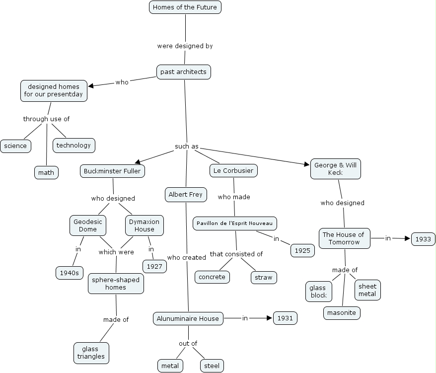 test, concrete, sphere-shaped homes, homes of the future, pavillon de l'esprit nouveau, alunuminaire house, 1931, buckminster fuller, geodesic dome, the house of tomorrow, masonite, le corbusier, 1940s, 1925, technology, steel, straw, sheet metal, glass block, albert frey, designed homes for our presentday, science, 1927, glass triangles, math, dymaxion house, past architects, george & will keck, metal, 1933