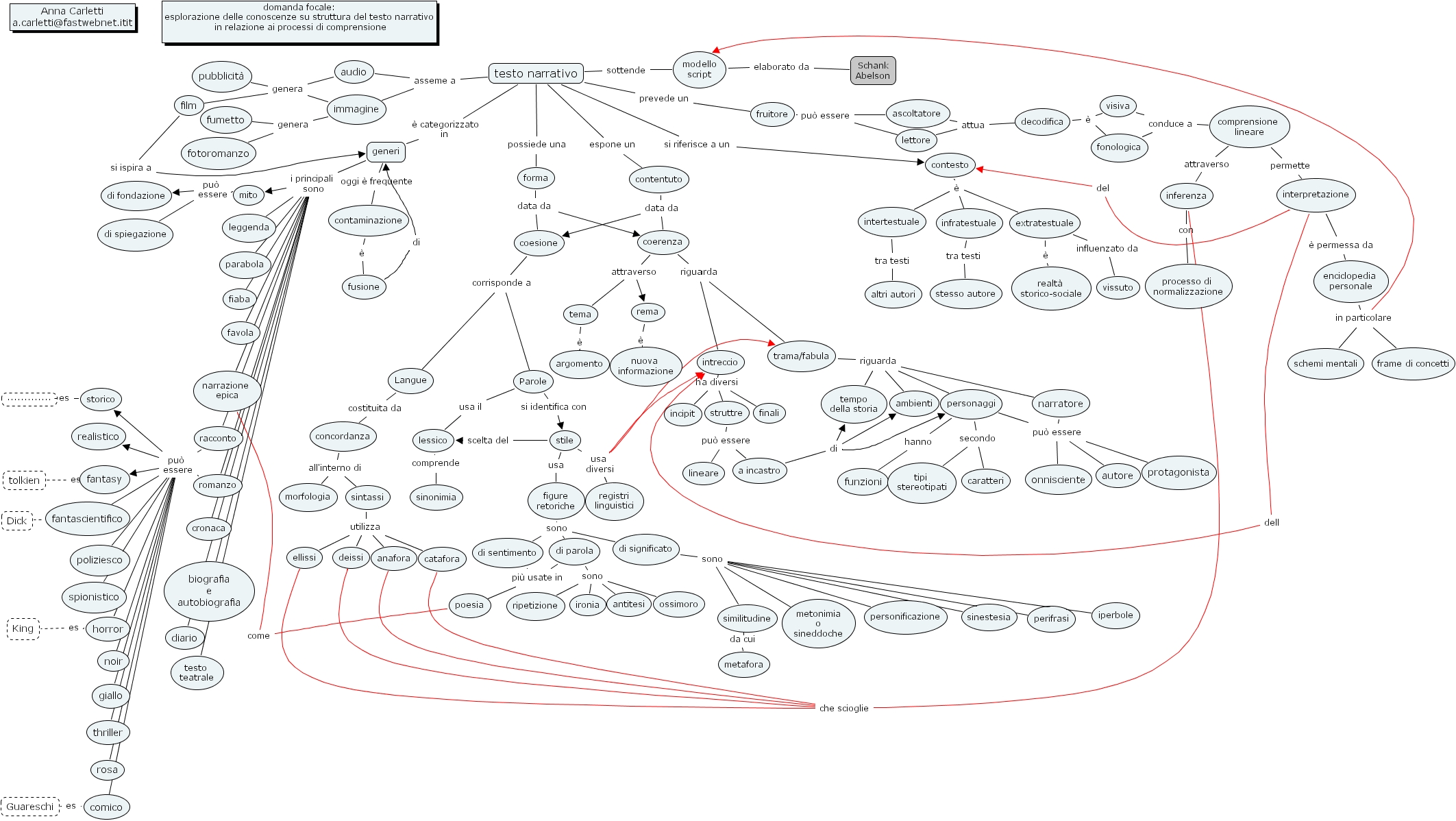 testo narrativo, mito, sintassi, protagonista, immagine, poesia, parole, anafora, generi, iperbole, funzioni, comico, parabola, personificazione, registri linguistici, fonologica, tema, realistico, vissuto, stesso autore, fantascientifico, nuova informazione, fruitore, visiva, incipit, finali, decodifica, figure retoriche, tipi stereotipati, contesto, metonimia o sineddoche, trama fabula, biografia e autobiografia, fotoromanzo, king, favola, a incastro, langue, noir, morfologia, storico, deissi, extratestuale, pubblicit�, intreccio, testo teatrale, testo narrativo, altri autori, ascoltatore , guareschi, di significato, di sentimento, ambienti, diario, argomento, coerenza, ellissi, coesione, processo di normalizzazione, audio, ossimoro, fantasy, contaminazione, ironia, tempo della storia, spionistico, ............., struttre, cronaca, lettore, catafora, poliziesco, modello script, comprensione lineare, narrazione epica, metafora, lineare, concordanza, schank abelson, lessico, frame di concetti, tolkien, fumetto, fiaba, ripetizione, caratteri, dick, sinonimia, antitesi, contentuto, schemi mentali, di spiegazione, anna carletti a.carletti@fastwebnet.itit, sinestesia, similitudine, rosa, giallo, di fondazione, realt� storico-sociale, horror, onnisciente, forma, racconto, narratore, di parola, rema, intertestuale, domanda focale esplorazione delle conoscenze su struttura del testo narrativo in relazione ai processi di comprensione , romanzo, leggenda, perifrasi, personaggi, film, inferenza, stile, thriller, interpretazione, autore, fusione, enciclopedia personale, infratestuale