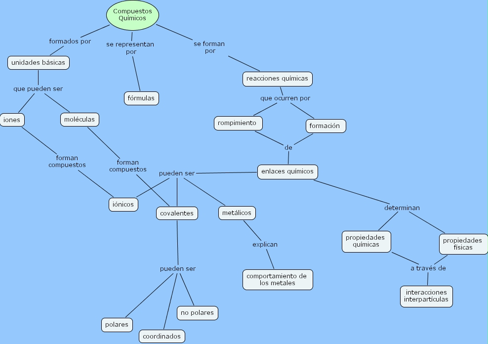 iones forman compuestos i�nicos, mol�culas forman compuestos covalentes, Compuestos Qu�micos formados por unidades b�sicas, propiedades qu�micas a trav�s de interacciones interpart�culas, formaci�n de enlaces qu�micos, Compuestos Qu�micos se forman por reacciones qu�micas, propiedades f�sicas a trav�s de interacciones interpart�culas, Compuestos Qu�micos se representan por f�rmulas, unidades b�sicas que pueden ser iones, unidades b�sicas que pueden ser mol�culas, covalentes pueden ser no polares, covalentes pueden ser polares, covalentes pueden ser coordinados, met�licos explican comportamiento de los metales, rompimiento de enlaces qu�micos, reacciones qu�micas que ocurren por rompimiento , reacciones qu�micas que ocurren por formaci�n , enlaces qu�micos pueden ser i�nicos, enlaces qu�micos pueden ser met�licos, enlaces qu�micos pueden ser covalentes, enlaces qu�micos determinan propiedades qu�micas, enlaces qu�micos determinan propiedades f�sicas