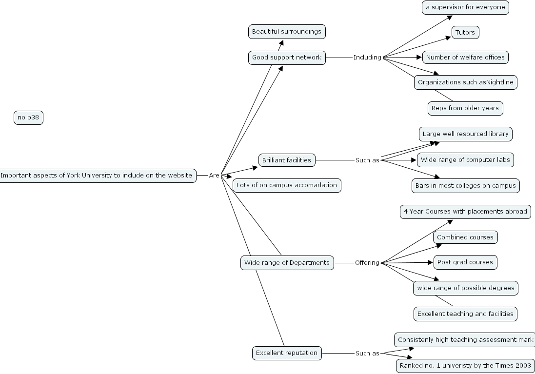 Good support network Including Tutors, Good support network Including Organizations such asNightline, Good support network Including Number of welfare offices, Good support network Including a supervisor for everyone, Good support network Including Reps from older years, Brilliant facilities Such as Bars in most colleges on campus, Brilliant facilities Such as Large well resourced library, Brilliant facilities Such as Wide range of computer labs, Brilliant facilities Such as Large well resourced library, Wide range of Departments Offering Excellent teaching and facilities, Wide range of Departments Offering Combined courses, Wide range of Departments Offering 4 Year Courses with placements abroad, Wide range of Departments Offering wide range of possible degrees, Wide range of Departments Offering Post grad courses, Wide range of Departments Offering Excellent teaching and facilities, Wide range of Departments Offering Combined courses, Wide range of Departments Offering 4 Year Courses with placements abroad, Wide range of Departments Offering wide range of possible degrees, Wide range of Departments Offering Post grad courses, Important aspects of York University to include on the website Are Excellent reputation, Important aspects of York University to include on the website Are Brilliant facilities, Important aspects of York University to include on the website Are Wide range of Departments, Important aspects of York University to include on the website Are Beautiful surroundings, Important aspects of York University to include on the website Are Good support network, Important aspects of York University to include on the website Are Lots of on campus accomadation, Excellent reputation Such as Consistenly high teaching assessment mark, Excellent reputation Such as Ranked no. 1 univeristy by the Times 2003