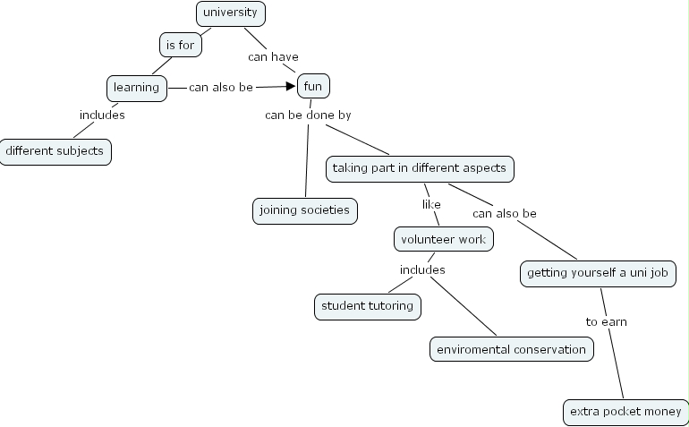 taking part in different aspects like volunteer work, fun can be done by joining societies, fun can be done by taking part in different aspects, university can have fun, getting yourself a uni job to earn extra pocket money, volunteer work includes student tutoring, volunteer work includes enviromental conservation, university ???? is for, university ???? learning, learning includes different subjects, learning can also be fun, taking part in different aspects can also be getting yourself a uni job