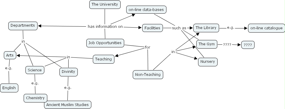 Facilities such as The Gym, Facilities such as The Library, Facilities such as Nursery, Arts e.g. English, Teaching in Science, Teaching in Divinity, Teaching in Arts, Job Opportunities for Teaching, Job Opportunities for Non-Teaching, The Gym ???? ????, Science e.g. Chemistry, Non-Teaching in Nursery, Non-Teaching in The Gym, Non-Teaching in The Library, The University has information on Facilities, The University has information on on-line data-bases, The University has information on Departments, The University has information on Job Opportunities, Divinity e.g. Ancient Muslim Studies, The Library e.g. on-line catalogue, on-line data-bases such as The Gym, on-line data-bases such as The Library, on-line data-bases such as Nursery, Departments in Arts, Departments in Divinity, Departments in Science
