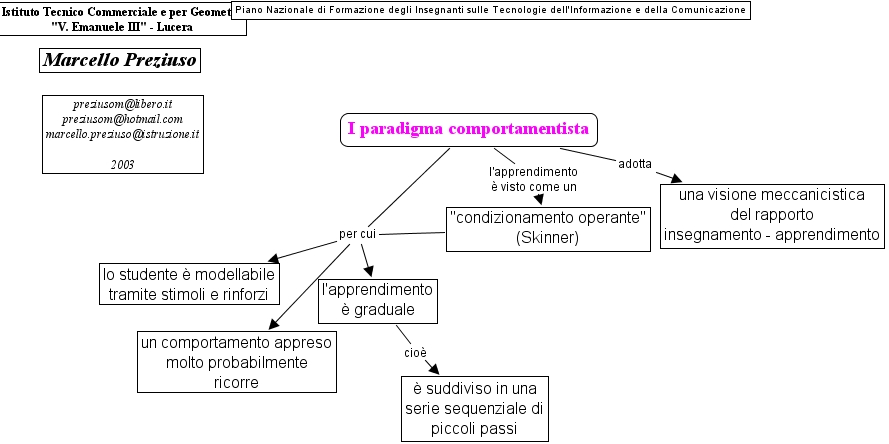 I paradigma comportamentista adotta una visione meccanicistica del rapporto insegnamento - apprendimento, I paradigma comportamentista l'apprendimento � visto come un "condizionamento operante" (Skinner), l'apprendimento � graduale cio� � suddiviso in una serie sequenziale di piccoli passi, "condizionamento operante" (Skinner) per cui un comportamento appreso molto probabilmente ricorre, "condizionamento operante" (Skinner) per cui lo studente � modellabile tramite stimoli e rinforzi, "condizionamento operante" (Skinner) per cui l'apprendimento � graduale, I paradigma comportamentista per cui un comportamento appreso molto probabilmente ricorre, I paradigma comportamentista per cui lo studente � modellabile tramite stimoli e rinforzi, I paradigma comportamentista per cui l'apprendimento � graduale