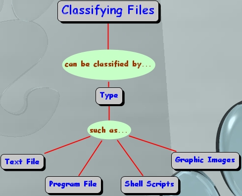 Type such as... Graphic Images, Type such as... Text File, Type such as... Shell Scripts, Type such as... Program File, Classifying Files can be classified by... Type