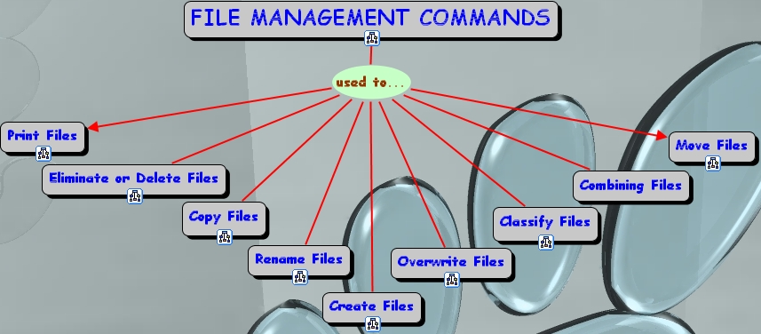 FILE MANAGEMENT COMMANDS used to... Print Files, FILE MANAGEMENT COMMANDS used to... Copy Files, FILE MANAGEMENT COMMANDS used to... Classify Files, FILE MANAGEMENT COMMANDS used to... Create Files, FILE MANAGEMENT COMMANDS used to... Overwrite Files, FILE MANAGEMENT COMMANDS used to... Rename Files, FILE MANAGEMENT COMMANDS used to... Move Files, FILE MANAGEMENT COMMANDS used to... Eliminate or Delete Files, FILE MANAGEMENT COMMANDS used to... Combining Files
