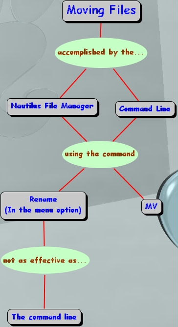 Rename (In the menu option) not as effective as... The command line, Moving Files accomplished by the... Command Line, Moving Files accomplished by the... Nautilus File Manager, Command Line using the command Rename (In the menu option), Command Line using the command MV, Nautilus File Manager using the command Rename (In the menu option), Nautilus File Manager using the command MV