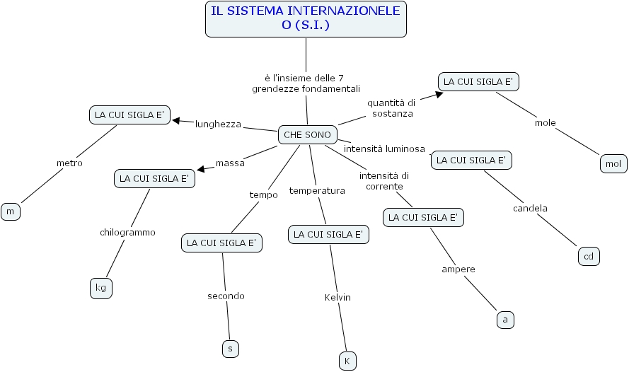 LA CUI SIGLA E' Kelvin K, CHE SONO temperatura LA CUI SIGLA E', CHE SONO massa LA CUI SIGLA E', LA CUI SIGLA E' secondo s, CHE SONO quantit� di sostanza LA CUI SIGLA E', LA CUI SIGLA E' mole mol, CHE SONO intensit� di corrente LA CUI SIGLA E', LA CUI SIGLA E' ampere a, LA CUI SIGLA E' chilogrammo kg, IL SISTEMA INTERNAZIONELE O (S.I.) � l'insieme delle 7 grendezze fondamentali CHE SONO, CHE SONO lunghezza LA CUI SIGLA E', LA CUI SIGLA E' candela cd, LA CUI SIGLA E' metro m, CHE SONO tempo LA CUI SIGLA E', CHE SONO intensit� luminosa LA CUI SIGLA E'