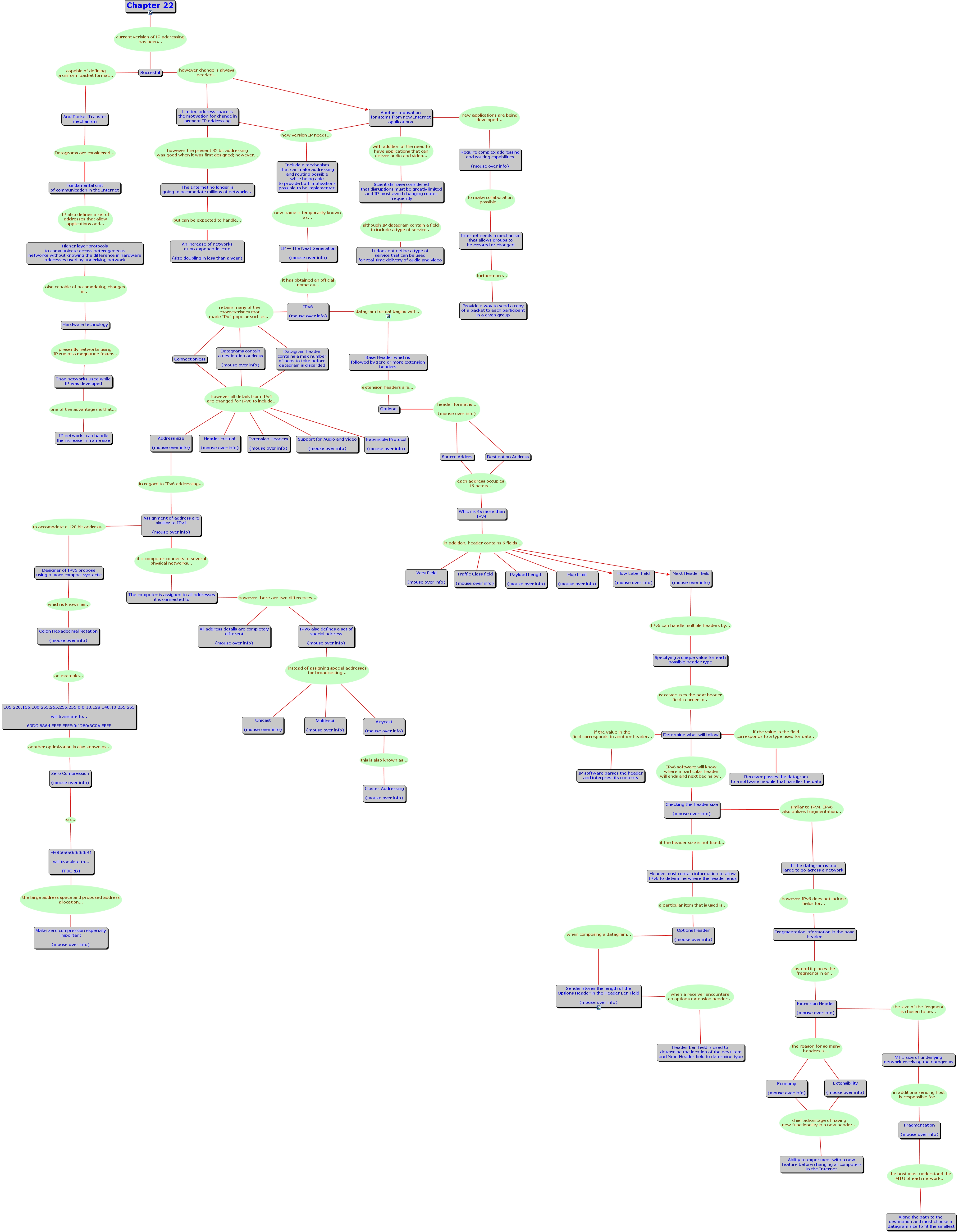 Assignment of address are similiar to IPv4 (mouse over info) if a computer connects to several physical networks... The computer is assigned to all addresses it is connected to, Limited address space is the motivation for change in present IP addressing new version IP needs... Include a mechanism that can make addressing and routing possible while being able to provide both motivations possible to be implemented, Destination Address each address occupies 16 octets... Which is 4x more than IPv4, Determine what will follow if the value in the field corresponds to a type used for data... Receiver passes the datagram to a software module that handles the data, Next Header field (mouse over info) IPv6 can handle multiple headers by... Specifying a unique value for each possible header type, Scientists have considered that disruptions must be greatly limited and IP must avoid changing routes frequently although IP datagram contain a field to include a type of service... It does not define a type of service that can be used for real-time delivery of audio and video, Hardware technology presently networks using IP run at a magnitude faster... Than networks used while IP was developed, IPv6 (mouse over info) retains many of the characteristics that made IPv4 popular such as... Datagrams contain a destination address (mouse over info), IPv6 (mouse over info) retains many of the characteristics that made IPv4 popular such as... Datagram header contains a max number of hops to take before datagram is discarded, IPv6 (mouse over info) retains many of the characteristics that made IPv4 popular such as... Connectionless, Another motivation for stems from new Internet applications with addition of the need to have applications that can deliver audio and video... Scientists have considered that disruptions must be greatly limited and IP must avoid changing routes frequently, And Packet Transfer mechanism Datagrams are considered... Fundamental unit of communication in the Internet, Assignment of address are similiar to IPv4 (mouse over info) to accomodate a 128 bit address... Designer of IPv6 propose using a more compact syntactic, Options Header (mouse over info) when composing a datagram... Sender stores the length of the Options Header in the Header Len Field (mouse over info), The computer is assigned to all addresses it is connected to however there are two differences... IPV6 also defines a set of special address (mouse over info), The computer is assigned to all addresses it is connected to however there are two differences... All address details are completely different (mouse over info), Determine what will follow if the value in the field corresponds to another header... IP software parses the header and interprest its contents, Extension Header (mouse over info) the size of the fragment is chosen to be... MTU size of underlying network receiving the datagrams, Than networks used while IP was developed one of the advantages is that... IP networks can handle the increase in frame size, Source Addres each address occupies 16 octets... Which is 4x more than IPv4, Base Header which is followed by zero or more extension headers extension headers are.... Optional, Checking the header size (mouse over info) if the header size is not fixed... Header must contain information to allow IPv6 to determine where the header ends, Datagrams contain a destination address (mouse over info) however all details from IPv4 are changed for IPv6 to include... Address size (mouse over info), Datagrams contain a destination address (mouse over info) however all details from IPv4 are changed for IPv6 to include... Support for Audio and Video (mouse over info), Datagrams contain a destination address (mouse over info) however all details from IPv4 are changed for IPv6 to include... Extension Headers (mouse over info), Datagrams contain a destination address (mouse over info) however all details from IPv4 are changed for IPv6 to include... Header Format (mouse over info), Datagrams contain a destination address (mouse over info) however all details from IPv4 are changed for IPv6 to include... Extensible Protocol (mouse over info), Include a mechanism that can make addressing and routing possible while being able to provide both motivations possible to be implemented new name is temporarily known as... IP -- The Next Generation (mouse over info), If the datagram is too large to go across a network however IPv6 does not include fields for... Fragmentation information in the base header, Anycast (mouse over info) this is also known as... Cluster Addressing (mouse over info), Internet needs a mechanism that allows groups to be created or changed furthermore... Provide a way to send a copy of a packet to each participant in a given group, Succesful however change is always needed... Limited address space is the motivation for change in present IP addressing, Succesful however change is always needed... Another motivation for stems from new Internet applications, Which is 4x more than IPv4 in addition, header contains 6 fields... Traffic Class field (mouse over info), Which is 4x more than IPv4 in addition, header contains 6 fields... Vers Field (mouse over info), Which is 4x more than IPv4 in addition, header contains 6 fields... Flow Label field (mouse over info), Which is 4x more than IPv4 in addition, header contains 6 fields... Next Header field (mouse over info), Which is 4x more than IPv4 in addition, header contains 6 fields... Hop Limit (mouse over info), Which is 4x more than IPv4 in addition, header contains 6 fields... Payload Length (mouse over info), 105.220.136.100.255.255.255.255.0.0.18.128.140.10.255.255 will translate to... 69DC:8864:FFFF:FFFF:0:1280:8C0A:FFFF another optimization is also known as... Zero Compression (mouse over info), Fragmentation information in the base header instead it places the fragments in an... Extension Header (mouse over info), Determine what will follow IPv6 software will know where