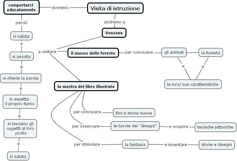 la mostra del libro illustrato per conoscere libri e storie nuove, Visita di istruzione andremo a Venzone, si lasciano gli oggetti al loro posto e si saluta, le loro/ sue caratteristiche e la foresta, gli animali e le loro/ sue caratteristiche, la fantasia e inventare storie e disegni, si aspetta il proprio turno e si lasciano gli oggetti al loro posto, Venzone a visitare il museo delle foreste, Venzone a visitare la mostra del libro illustrato, si chiede la parola e si aspetta il proprio turno, si ascolta e si chiede la parola, la mostra del libro illustrato per stimolare la fantasia, comportarci educatamente perci� si saluta, le tavole dei "disegni" e scoprire tecniche pittoriche, la mostra del libro illustrato per osservare le tavole dei "disegni", il museo delle foreste per conoscere la foresta, il museo delle foreste per conoscere gli animali, si saluta e si ascolta, Visita di istruzione dovremo comportarci educatamente