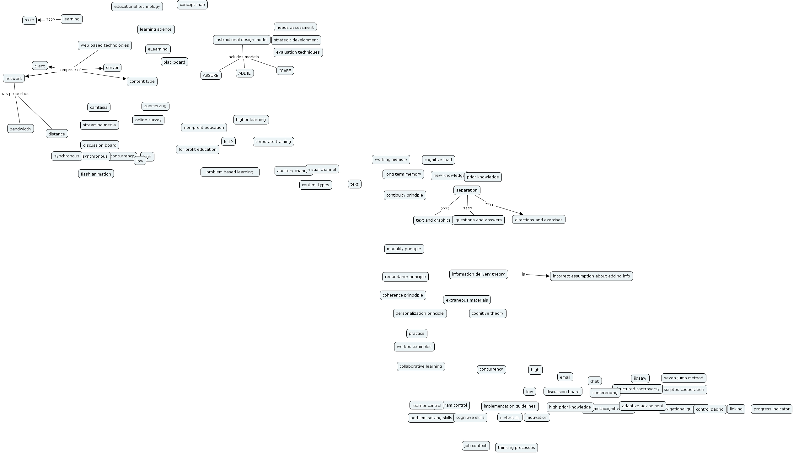 Denny Lau, instructional design model includes models ADDIE, learning ???? ????, web based technologies comprise of client, separation ???? text and graphics, network has properties distance, separation ???? questions and answers, web based technologies comprise of server, web based technologies comprise of content type, web based technologies comprise of network, information delivery theory is incorrect assumption about adding info