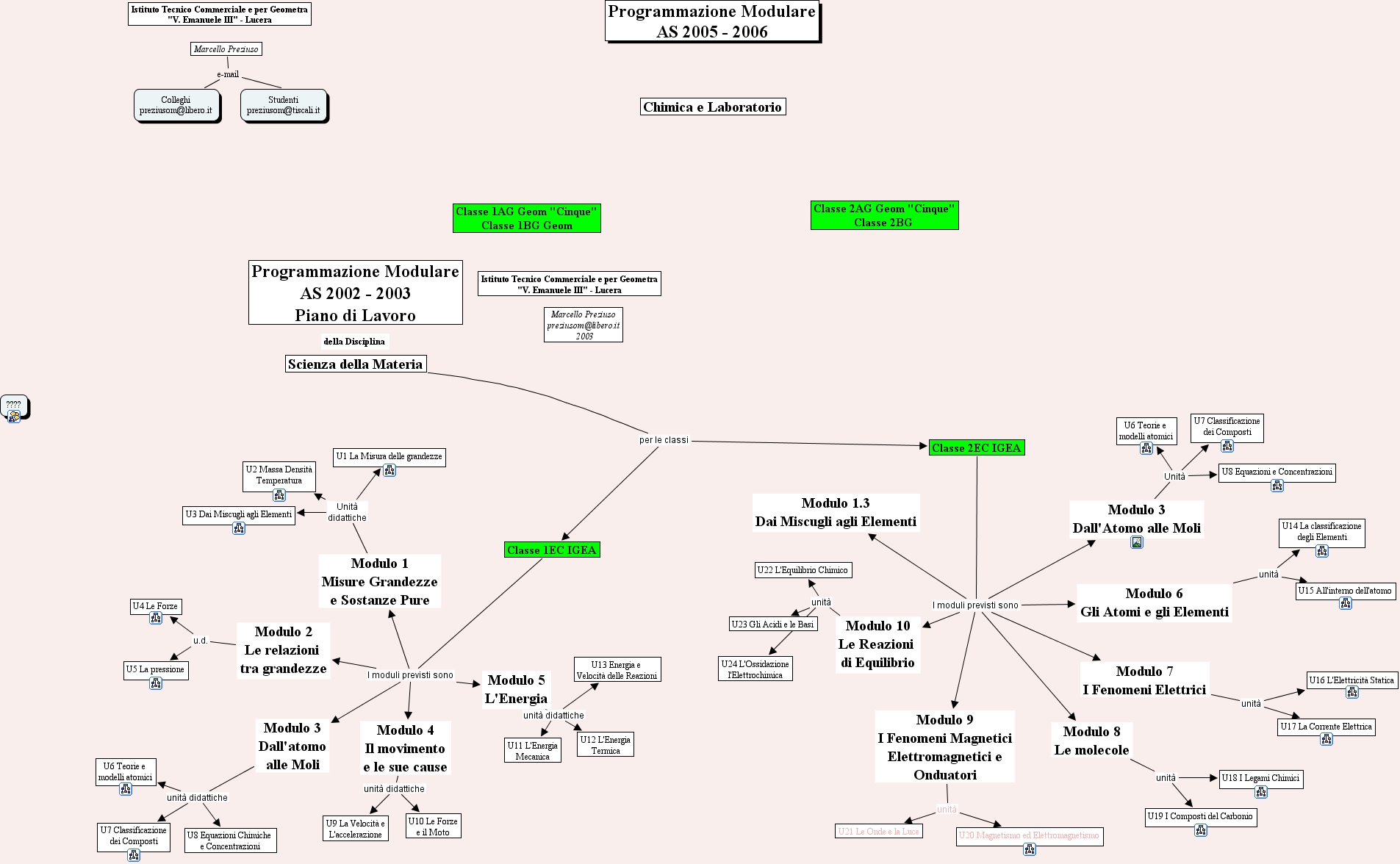 Programmazione ITER, Modulo 9 I Fenomeni Magnetici Elettromagnetici e Onduatori unità U20 Magnetismo ed Elettromagnetismo, Modulo 5 L'Energia unità didattiche U13 Energia e Velocità delle Reazioni, Modulo 7 I Fenomeni Elettrici unità U17 La Corrente Elettrica, Modulo 10 Le Reazioni di Equilibrio unità U23 Gli Acidi e le Basi, Scienza della Materia per le classi Classe 1EC IGEA, Modulo 8 Le molecole unità U19 I Composti del Carbonio, Modulo 6 Gli Atomi e gli Elementi unità U15 All'interno dell'atomo, Modulo 9 I Fenomeni Magnetici Elettromagnetici e Onduatori unità U21 Le Onde e la Luce, Modulo 4 Il movimento e le sue cause unità didattiche U10 Le Forze e il Moto, Classe 2EC IGEA I moduli previsti sono Modulo 7 I Fenomeni Elettrici