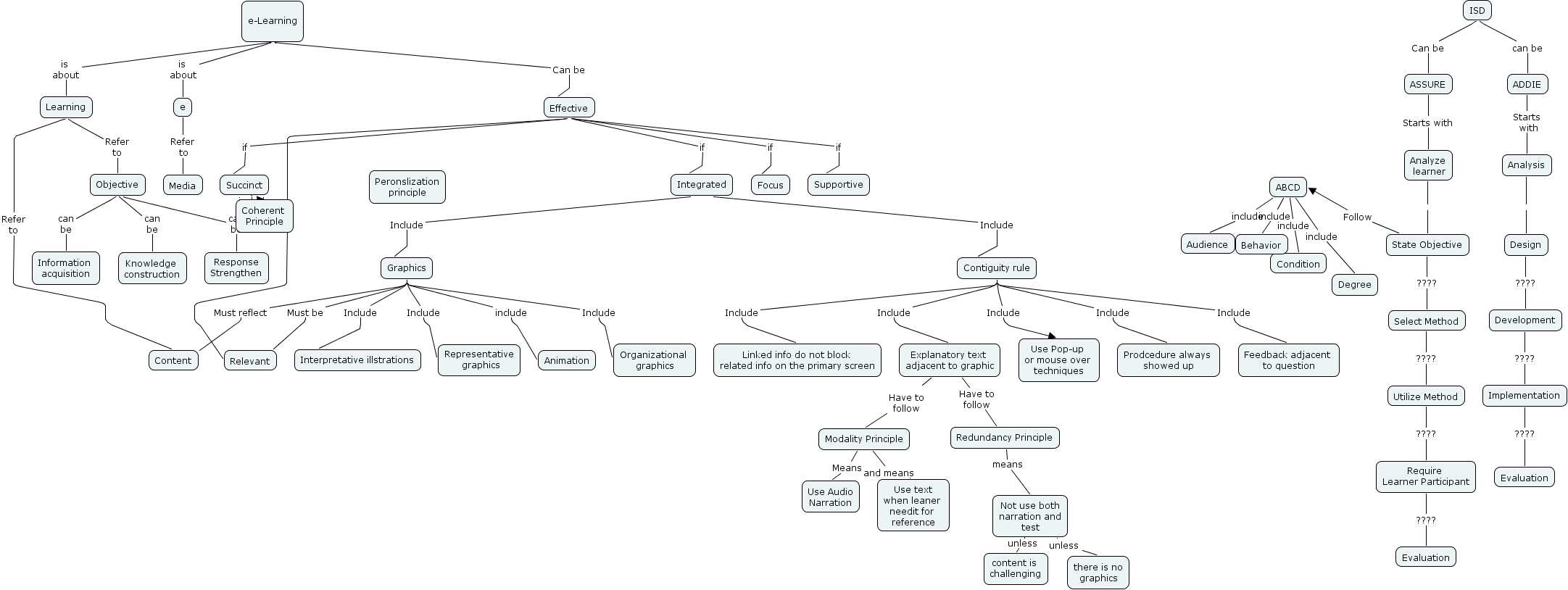 Jasper Pan W4, Contiguity rule Include Use Pop-up or mouse over techniques, Effective if Focus, Not use both narration and test unless there is no graphics, e-Learning is about e, Effective if Relevant, ABCD include Behavior, e-Learning is about Learning, Implementation ???? Evaluation, Modality Principle and means Use text when leaner needit for reference, Learning Refer to Content