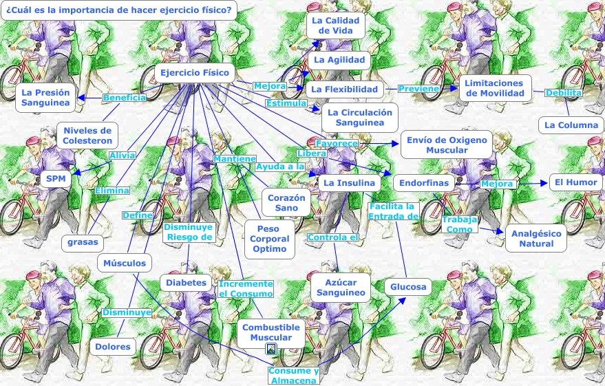 Ejercicio, Ejercicio Físico Beneficia Niveles de Colesteron, Endorfinas Mejora El Humor, La Insulina Facilita la Entrada de Glucosa, Ejercicio Físico Define Músculos, Ejercicio Físico Alivia SPM, Ejercicio Físico Beneficia La Presión Sanguinea, Ejercicio Físico Mejora La Agilidad, Ejercicio Físico Estimula La Circulación Sanguinea, Ejercicio Físico Disminuye Dolores, Ejercicio Físico Elimina grasas