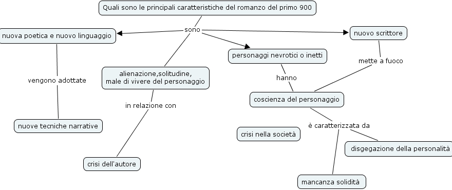 romanzo primo900, nuova poetica e nuovo linguaggio, disgegazione della personalit�, quali sono le principali caratteristiche del romanzo del primo 900, nuove tecniche narrative, alienazione,solitudine, male di vivere del personaggio, crisi dell'autore, crisi nella societ�, personaggi nevrotici o inetti, coscienza del personaggio, nuovo scrittore, mancanza solidit�