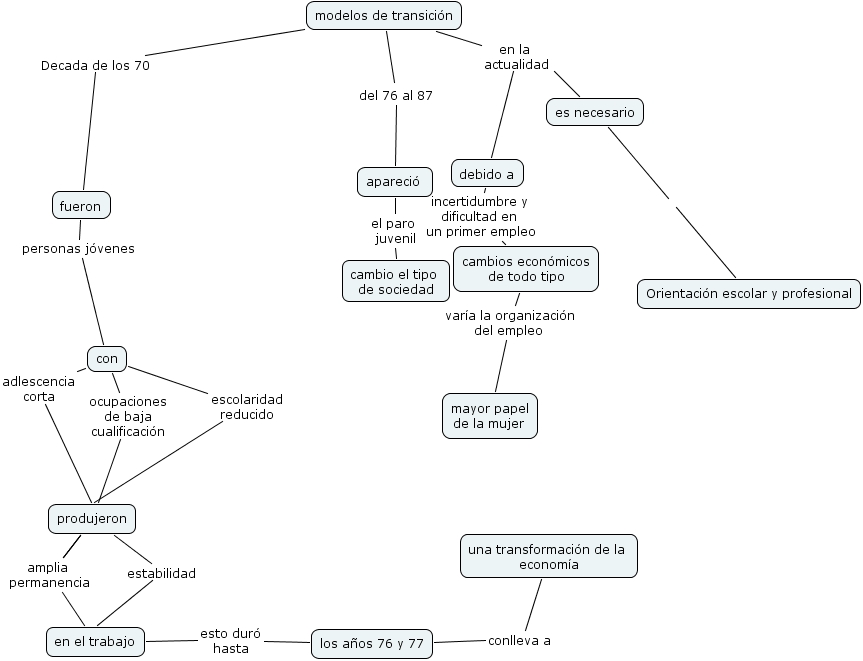 julián. modelos de transición, con adlescencia corta produjeron, produjeron estabilidad en el trabajo, los años 76 y 77 conlleva a una transformación de la economía, modelos de transición en la actualidad debido a, con escolaridad reducido produjeron, es necesario en la actualidad debido a, en el trabajo esto duró hasta los años 76 y 77, modelos de transición Decada de los 70 fueron, produjeron amplia permanencia en el trabajo, es necesario Orientación escolar y profesional