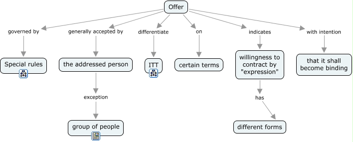 Offer, Offer generally accepted by the addressed person, willingness to contract by "expression" has different forms, Offer on certain terms, Offer differentiate ITT, the addressed person exception group of people, Offer indicates willingness to contract by "expression", Offer with intention that it shall become binding, Offer governed by Special rules