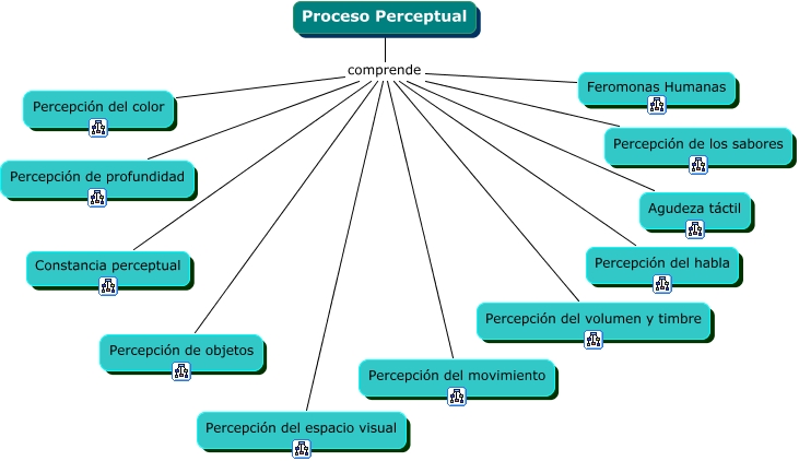 Procesos psicologicos basicos, Proceso Perceptual comprende Percepción de profundidad, Proceso Perceptual comprende Agudeza táctil, Proceso Perceptual comprende Percepción del color, Proceso Perceptual comprende Percepción del habla, Proceso Perceptual comprende Percepción de objetos, Proceso Perceptual comprende Feromonas Humanas, Proceso Perceptual comprende Percepción de los sabores, Proceso Perceptual comprende Percepción del volumen y timbre, Proceso Perceptual comprende Percepción del espacio visual, Proceso Perceptual comprende Constancia perceptual