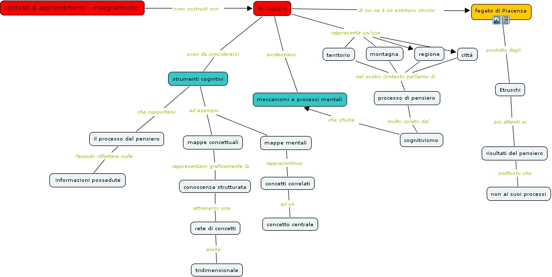 mappa_e_apprendimento, le mappe rappresenta un/una regione, fegato di Piacenza prodotto dagli Etruschi, le mappe sono da considerarsi strumenti cognitivi, le mappe evidenziano meccanismi e processi mentali, conoscenza strutturata attraverso una rete di concetti, concetti correlati ad un concetto centrale, contesti di apprendimento - insegnamento sono costruiti con le mappe, città nel nostro contesto parliamo di processo di pensiero, le mappe rappresenta un/una territorio, il processo del pensiero facendo riflettere sulle informazioni possedute
