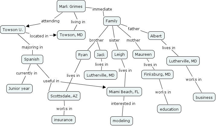 mgrime3, Spanish currently in Junior year, Jack lives in Lutherville, MD, Mark Grimes immediate Family, Mark Grimes attending Towson U., Family brother Ryan, Family father Albert, Towson U. majoring in Spanish, Scottsdale, AZ works in insurance, Family sister Leigh, Finksburg, MD works in education