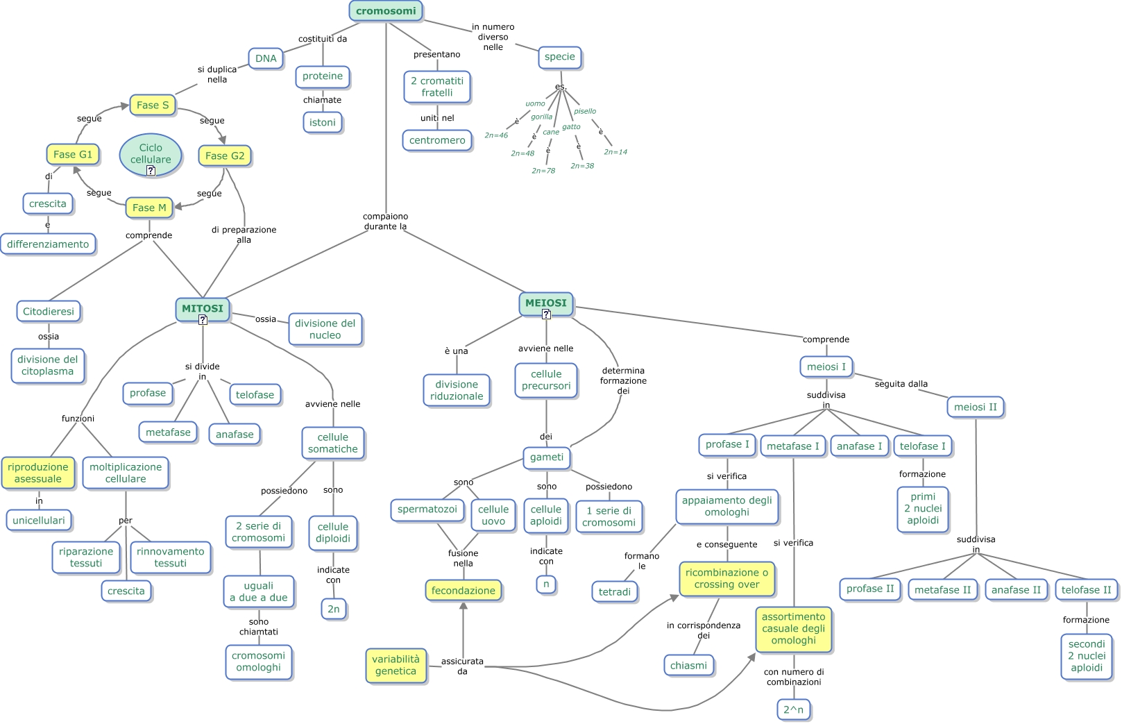 Questa Cmap, creata con IHMC CmapTools, contiene informazioni relative a: mappa_1, meiosi I suddivisa in anafase I, metafase I si verifica assortimento casuale degli omologhi, meiosi II suddivisa in metafase II, riproduzione asessuale in unicellulari, meiosi I suddivisa in telofase I, moltiplicazione cellulare per rinnovamento tessuti, uomo è 2n=46, meiosi I suddivisa in metafase I, MITOSI si divide in anafase, cromosomi presentano 2 cromatiti fratelli, cromosomi compaiono durante la MEIOSI, moltiplicazione cellulare per crescita, specie es. cane, specie es. pisello, cromosomi costituiti da DNA, Fase G2 di preparazione alla MITOSI, 2 serie di cromosomi sono uguali a due a due, profase I si verifica appaiamento degli omologhi, cane è 2n=78, MEIOSI determina formazione dei gameti
