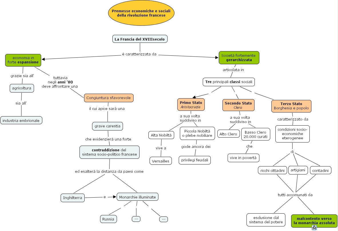 rivoluzione_francese, Piccola Nobiltà o plebe nobiliare gode ancora dei privilegi feudali, artigiani tutti accomunati da malcontento verso la monarchia assoluta, condizioni socio- economiche eterogenee di artigiani, ricchi cittadini tutti accomunati da esclusione dal sistema del potere, Primo Stato Aristocrazia a sua volta suddiviso in Alta Nobiltà, Terzo Stato Borghesia e popolo caratterizzato da condizioni socio- economiche eterogenee, Monarchie illuminate ..., contadini tutti accomunati da esclusione dal sistema del potere, La Francia del XVIIIsecolo è caratterizzata da Società fortemente gerarchizzata, contraddizione del sistema socio-politico francese ed esalterà la distanza da paesi come Inghilterra