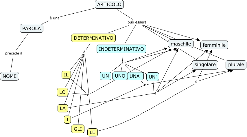 Articolo, DETERMINATIVO è I, INDETERMINATIVO è UN', LE è femminile, UN è maschile, ARTICOLO può essere INDETERMINATIVO, ARTICOLO è una PAROLA, DETERMINATIVO è LO, DETERMINATIVO è IL, LO è maschile, DETERMINATIVO è GLI