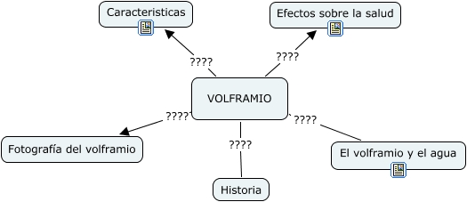mapa conceptual, VOLFRAMIO ???? Fotografía del volframio, VOLFRAMIO ???? Efectos sobre la salud, VOLFRAMIO ???? El volframio y el agua, VOLFRAMIO ???? Caracteristicas, VOLFRAMIO ???? Historia