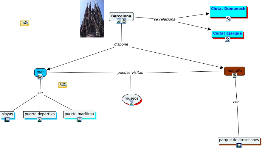 Barcelona, Barcelona se relaciona Ciutat Ejarque, Barcelona dispone montaña, mar con puerto deportivo, montaña puedes visitas museos, mar con puerto marítimo, mar puedes visitas museos, Barcelona se relaciona Ciutat Domenech, mar con playas, Barcelona dispone mar, montaña con parque de atracciones