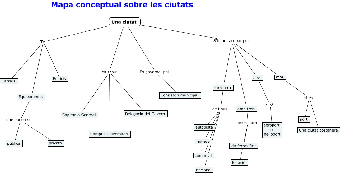 Ciutat, Una ciutat Pot tenir Campus Universitàri, amb tren necesitarà via ferroviària, carretera de tipus nacional, Equipaments que poden ser públics, Una ciutat Pot tenir Delegació del Govern, Una ciutat Te Carrers, Una ciutat S'hi pot arribar per amb tren, amb tren necesitarà Estació, Una ciutat S'hi pot arribar per carretera, Una ciutat Pot tenir Capitania General