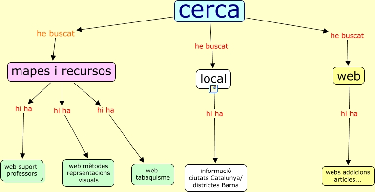 exercici 8, mapes i recursos hi ha web tabaquisme, cerca he buscat local, mapes i recursos hi ha web suport professors, cerca he buscat ????, mapes i recursos hi ha web mètodes reprsentacions visuals, cerca he buscat web, local hi ha informació ciutats Catalunya/ districtes Barna, web hi ha webs addicions articles...
